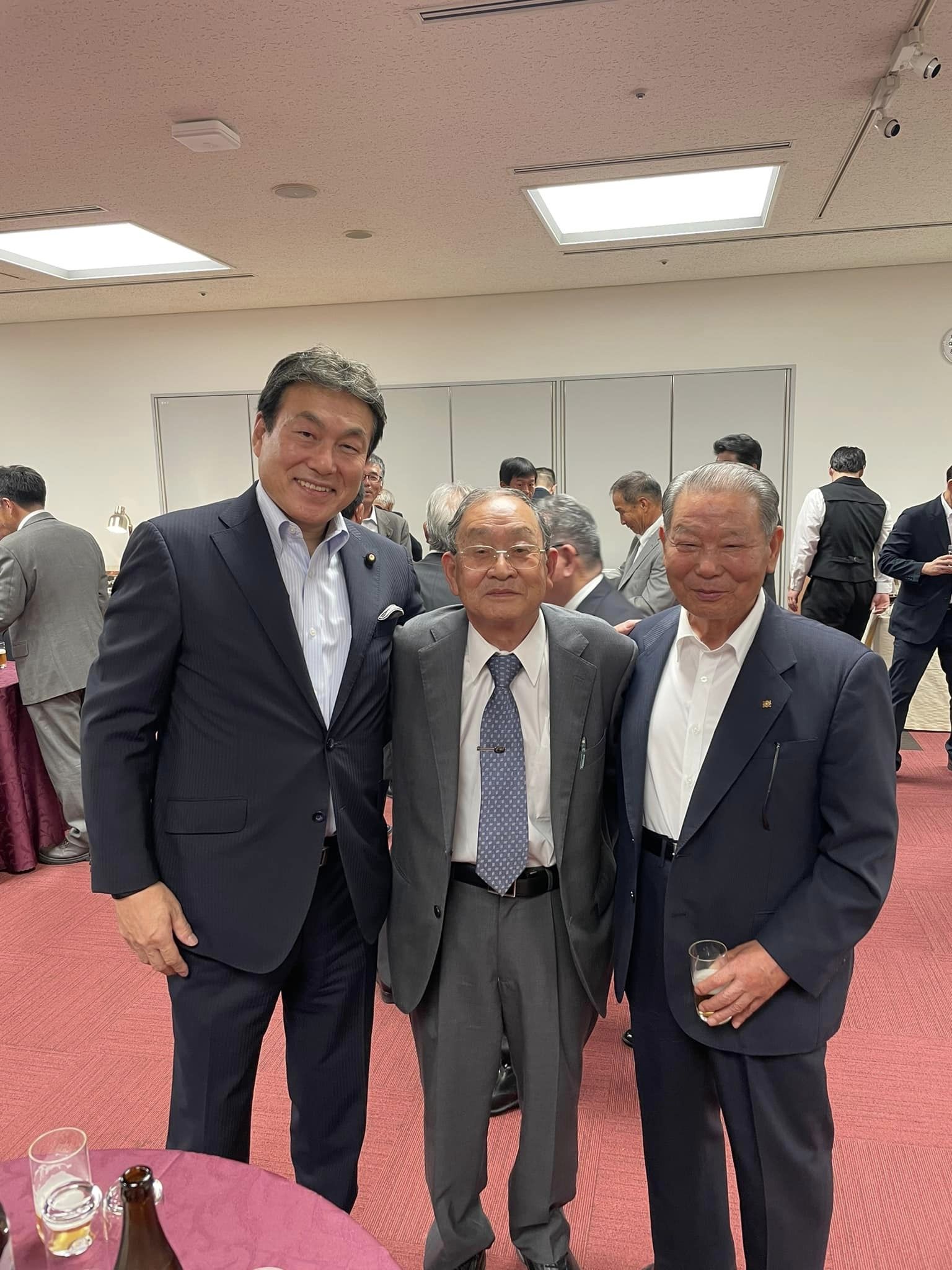 川上万一郎会長と地元の宮田成紀会長、そして県議会時代に議会事務局職員であった鈴木雅仁事務局長とともに。