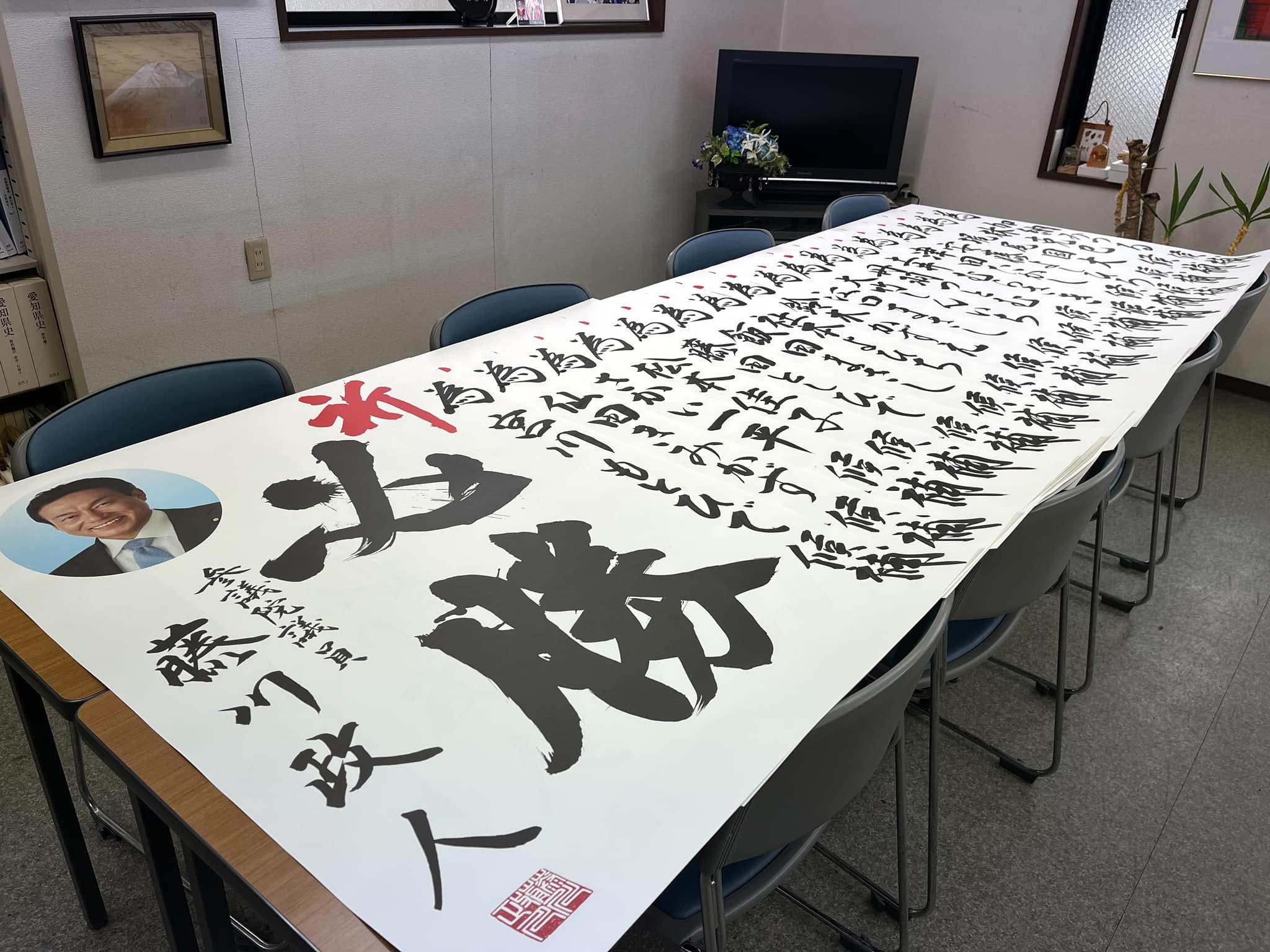 事務所にて再び地方統一選挙の必勝ビラ書きです。