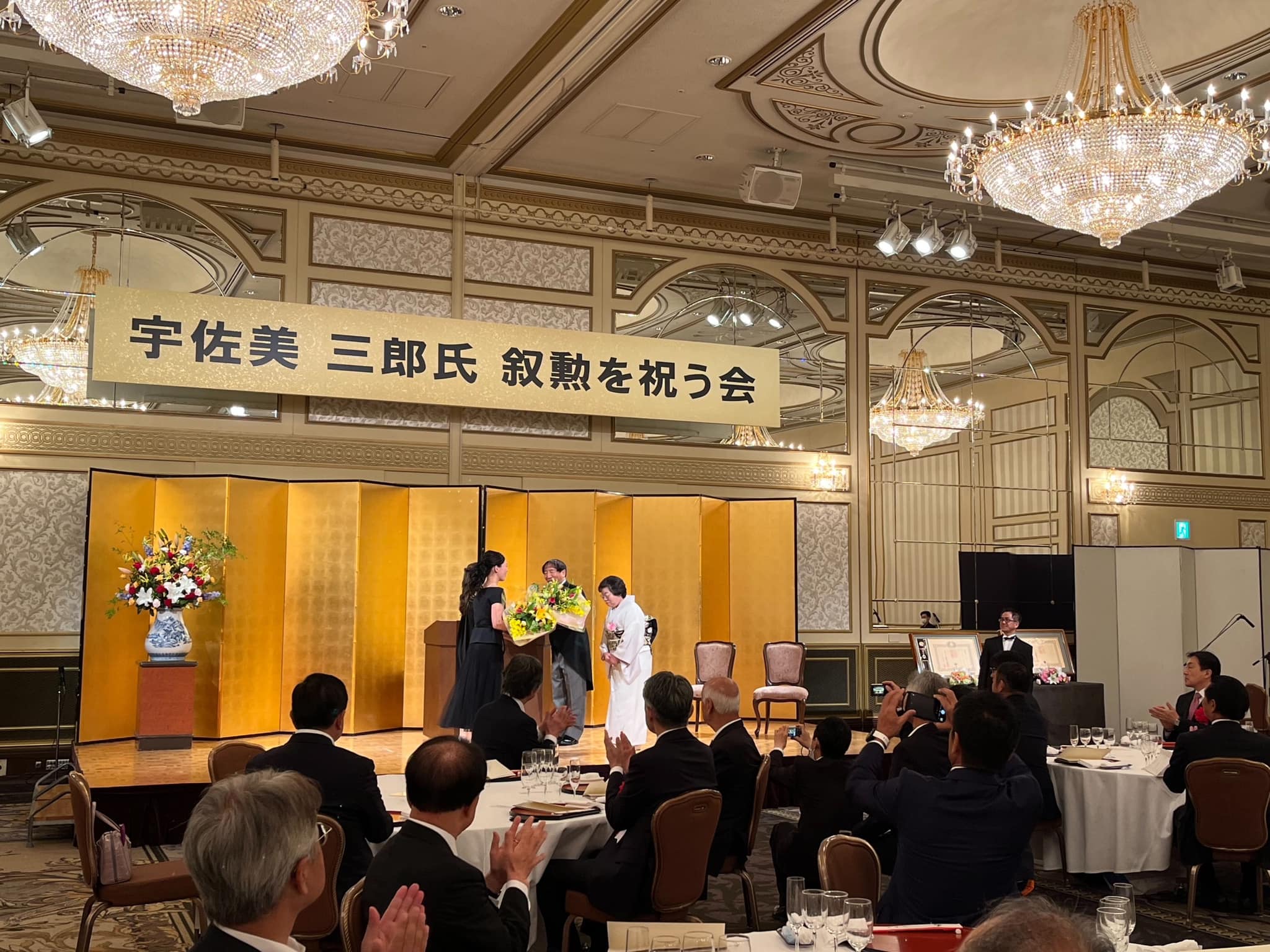 全国石油商業組合連合会副会長であり愛知県石油商業組合会長の宇佐美三郎氏の旭日小綬章叙勲を祝う会が名古屋市内において盛大に開催されました。