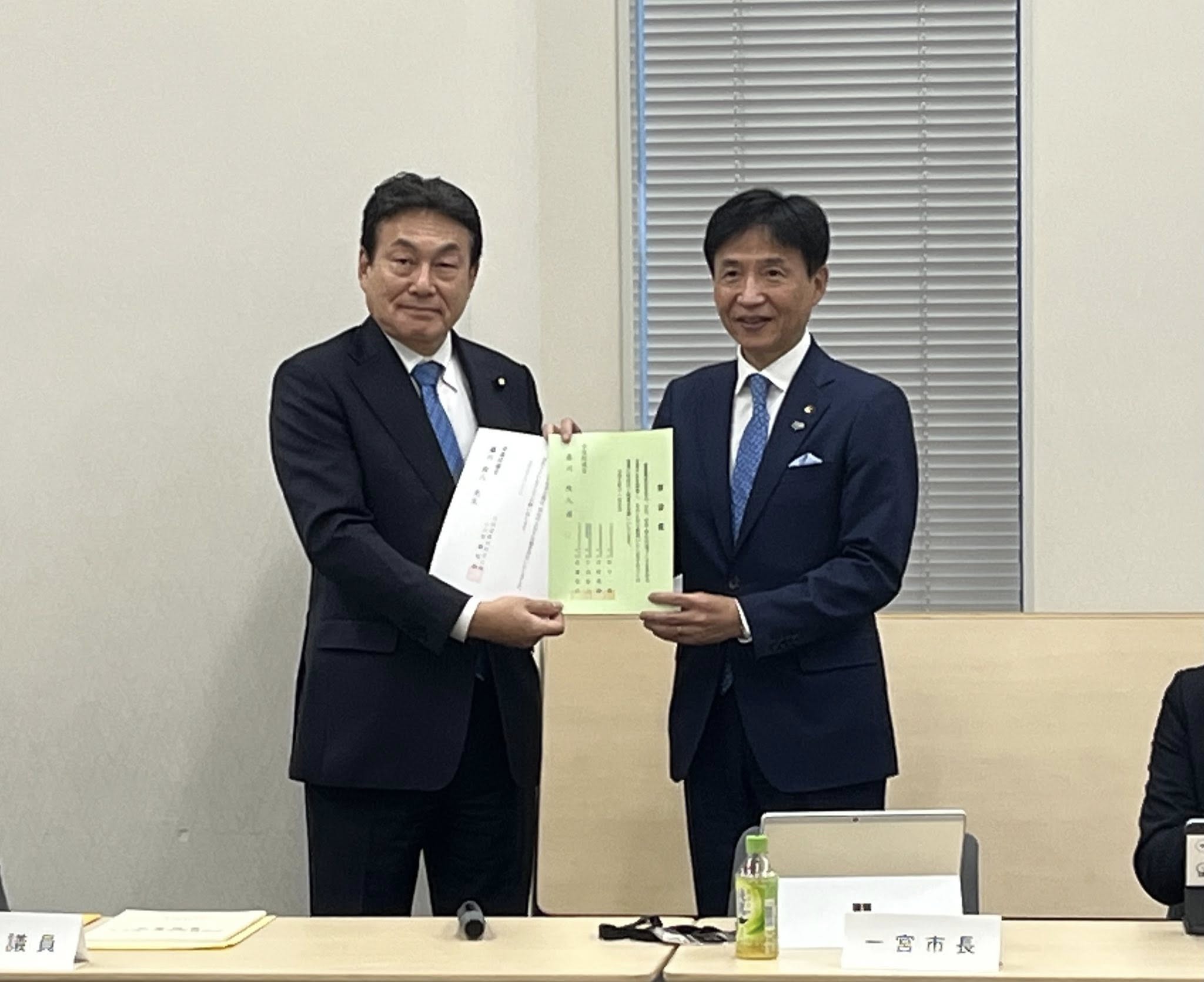 中野正康一宮市長から代表して要望書を手交いただきました。