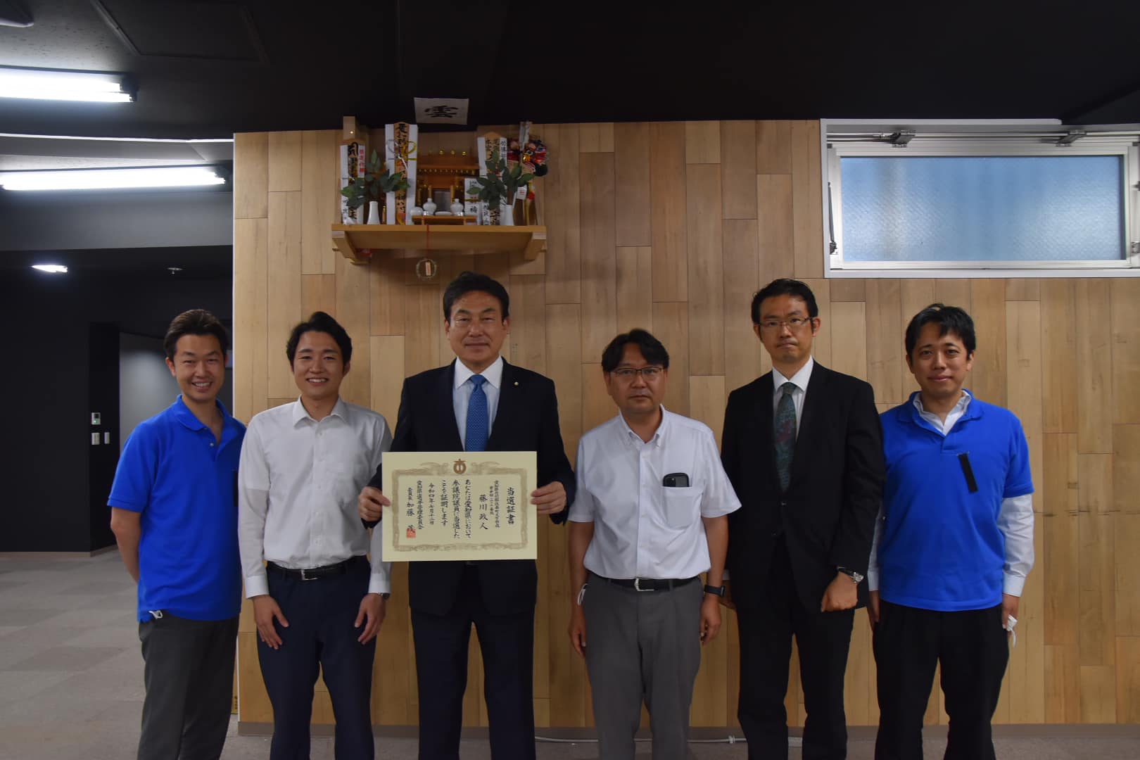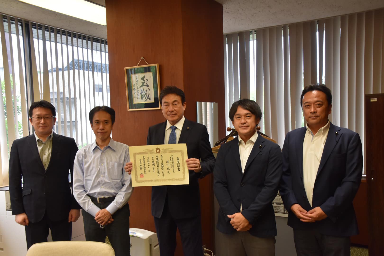 愛知県庁において当選証書を授与されました。