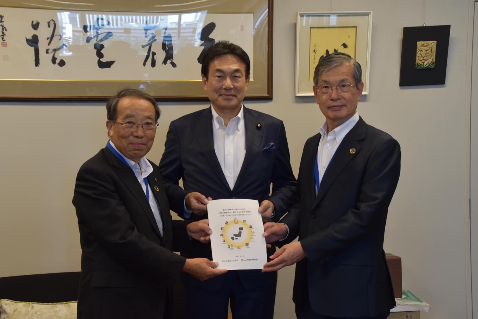 山本名古屋商工会議所会頭、水野中部経済連合会会長が東京一極集中是正に対するご要望のため来所されました。