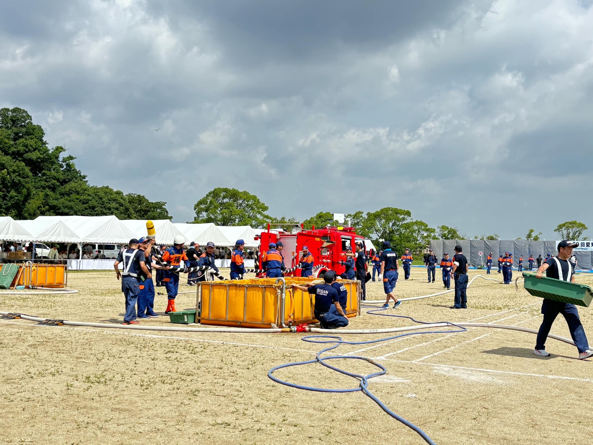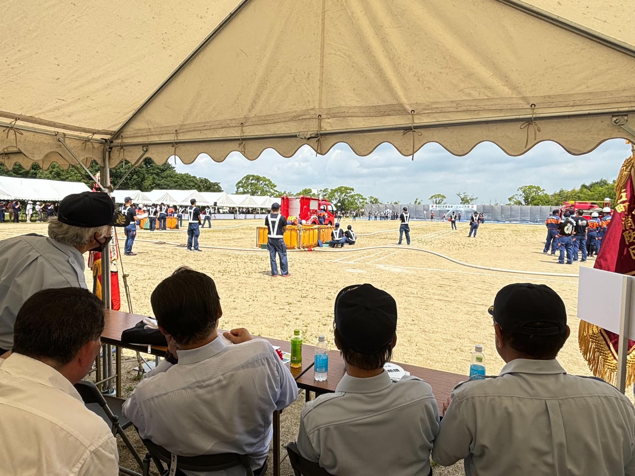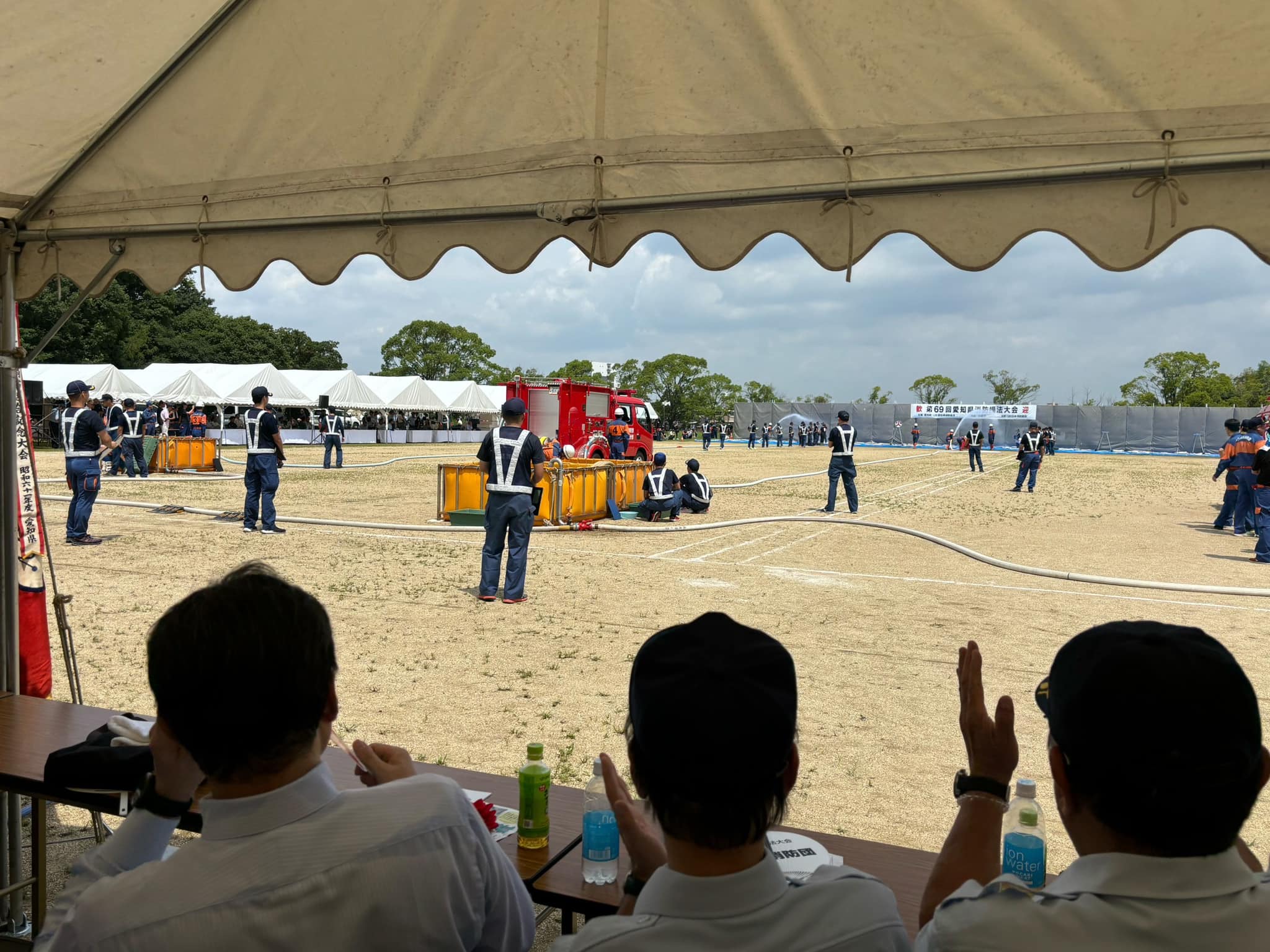 猛暑の中、愛知県日進市の愛知学院大学にて第69回愛知県消防操法大会が開催されました。