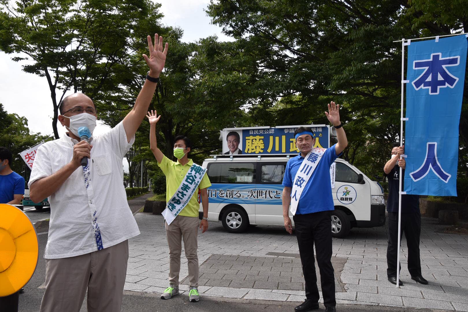 本日は豊橋市内で、日本薬剤師政治連盟を代表して立候補されている神谷まさゆき候補とともに、お地元の根本幸典衆議院議員とお招き頂いた企業様でご挨拶させていただきながら、丹羽洋章県議会議員、杉浦正和県議会議員、中村竜彦県議会議員と一緒に街頭演説会を行っております。