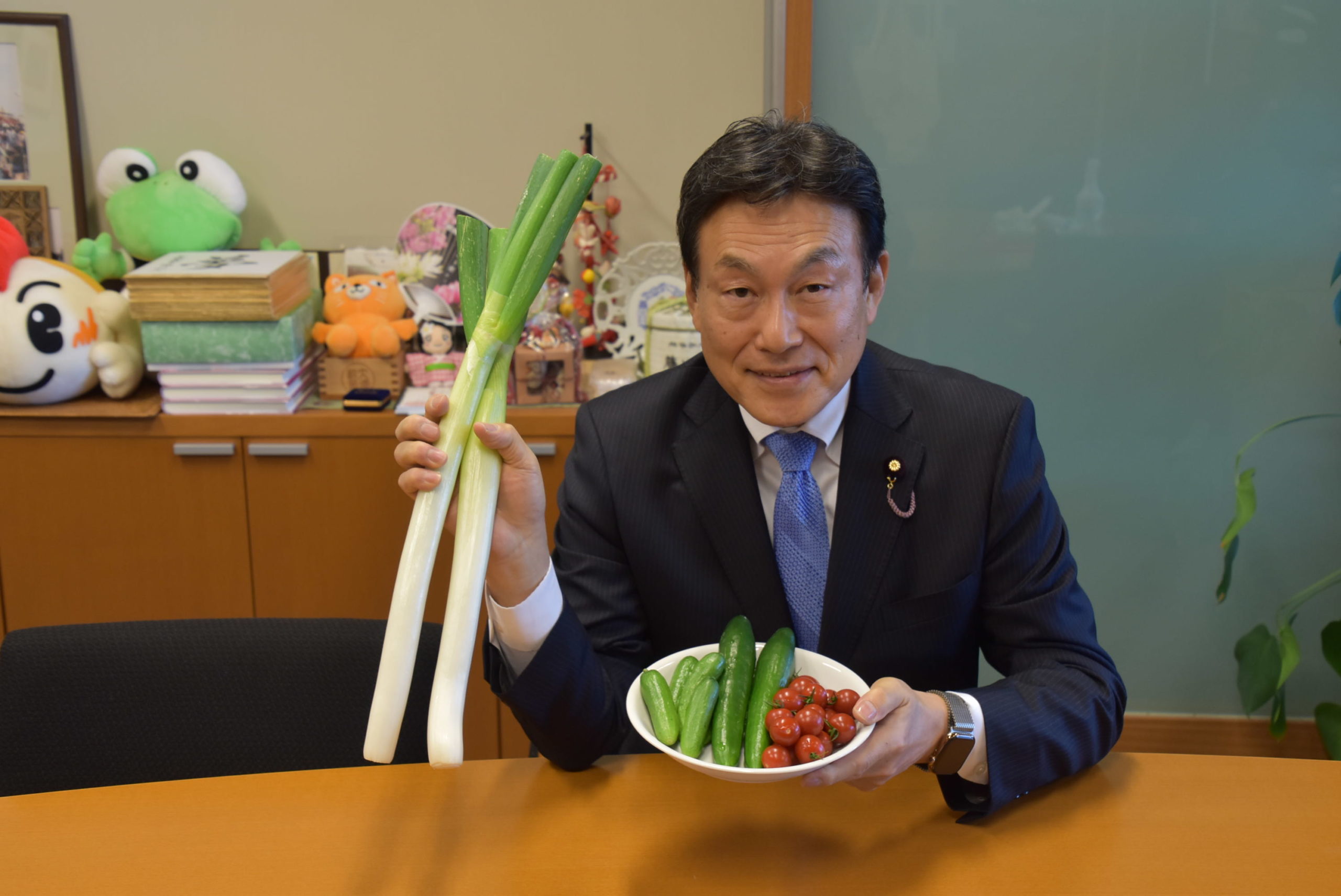 天野さんからはトマト、下村さんからはきゅうり、松井さんからはネギ、とそれぞれ生産されている自慢のお野菜をいただきました。