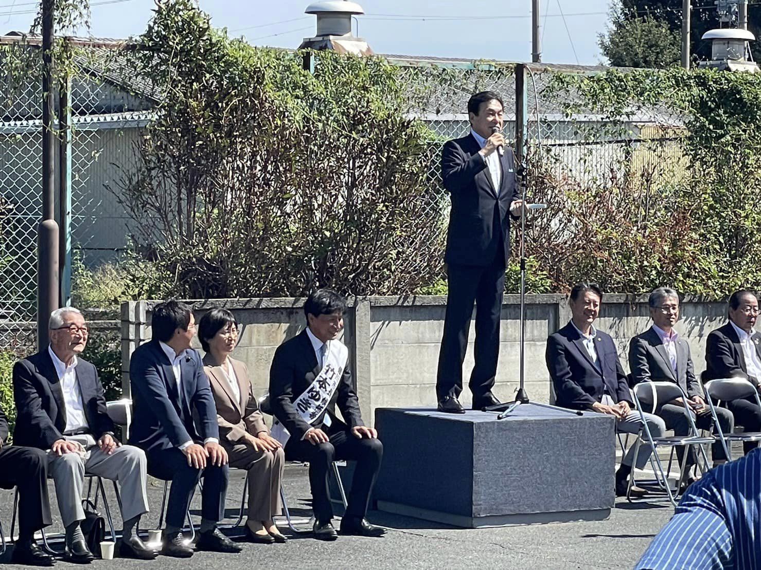 出発式には現豊川市長・竹本ゆきお候補の応援におじゃましました。