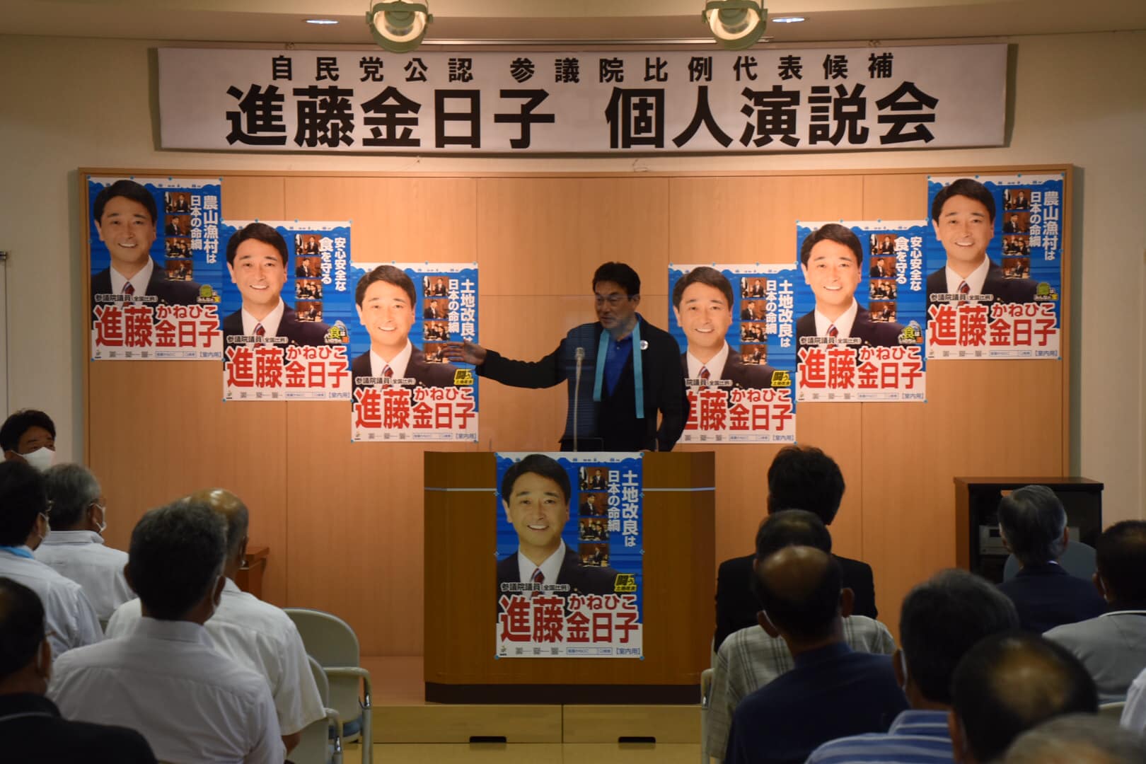 進藤金日子先生の個人演説会が、入鹿用水土地改良区で行われました。