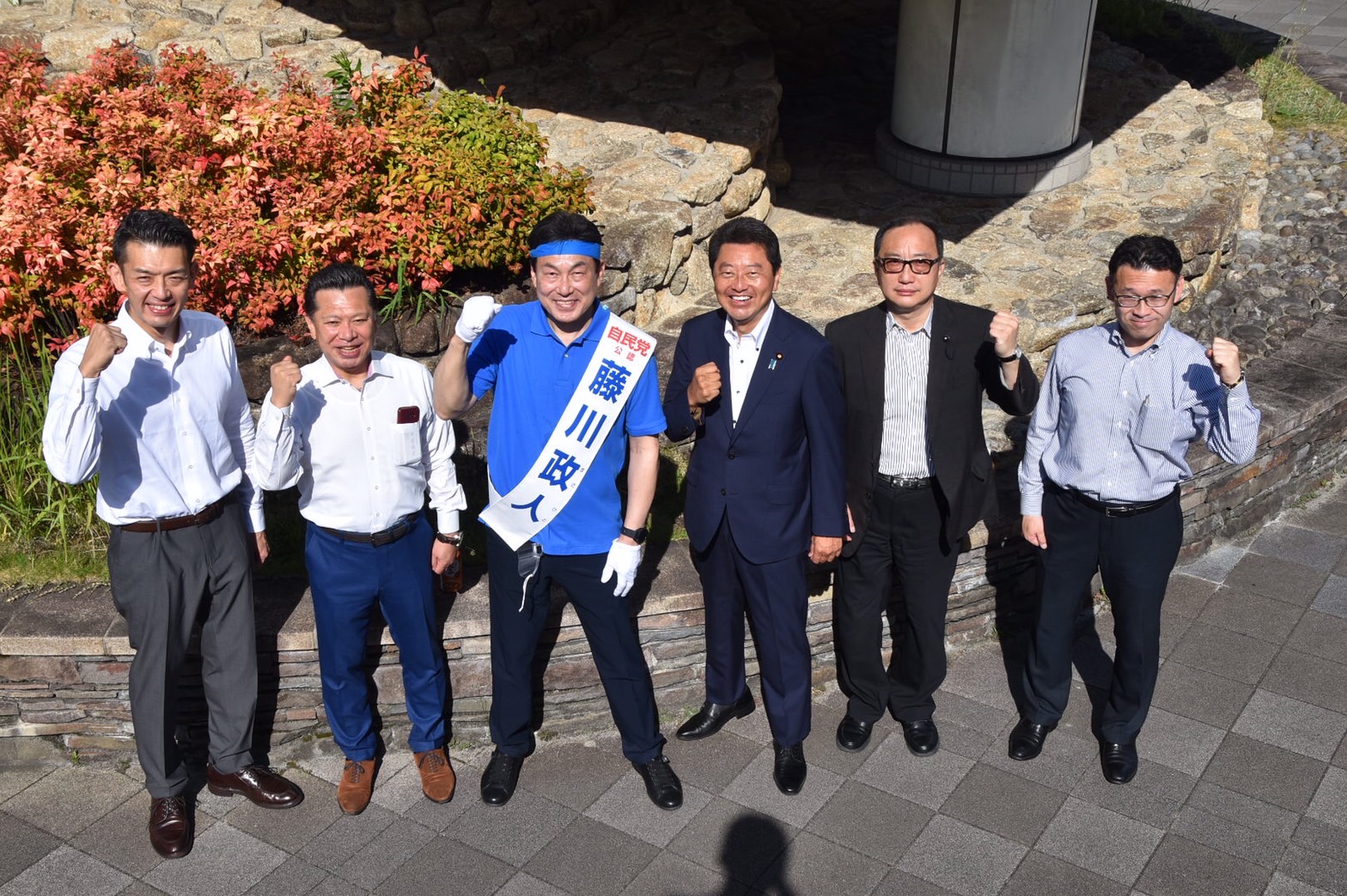 選挙区支部長の池田佳隆文科副大臣、須崎かん県議会議長、岩本たかひろ名古屋市会議長、元市議長の中里高之市議、渡辺昇県議、成田たかゆき市議と公職者勢揃いで開催いただきました。