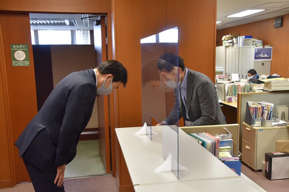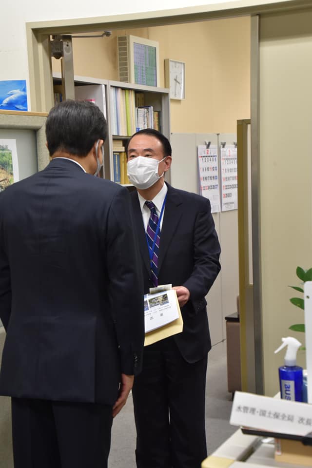 衆議院にて予算委員会が開催されている中ではありましたが、山田技官、高田港湾局長、榊都市局長、井上水局長始め多くの幹部の皆様にご対応いただきました。