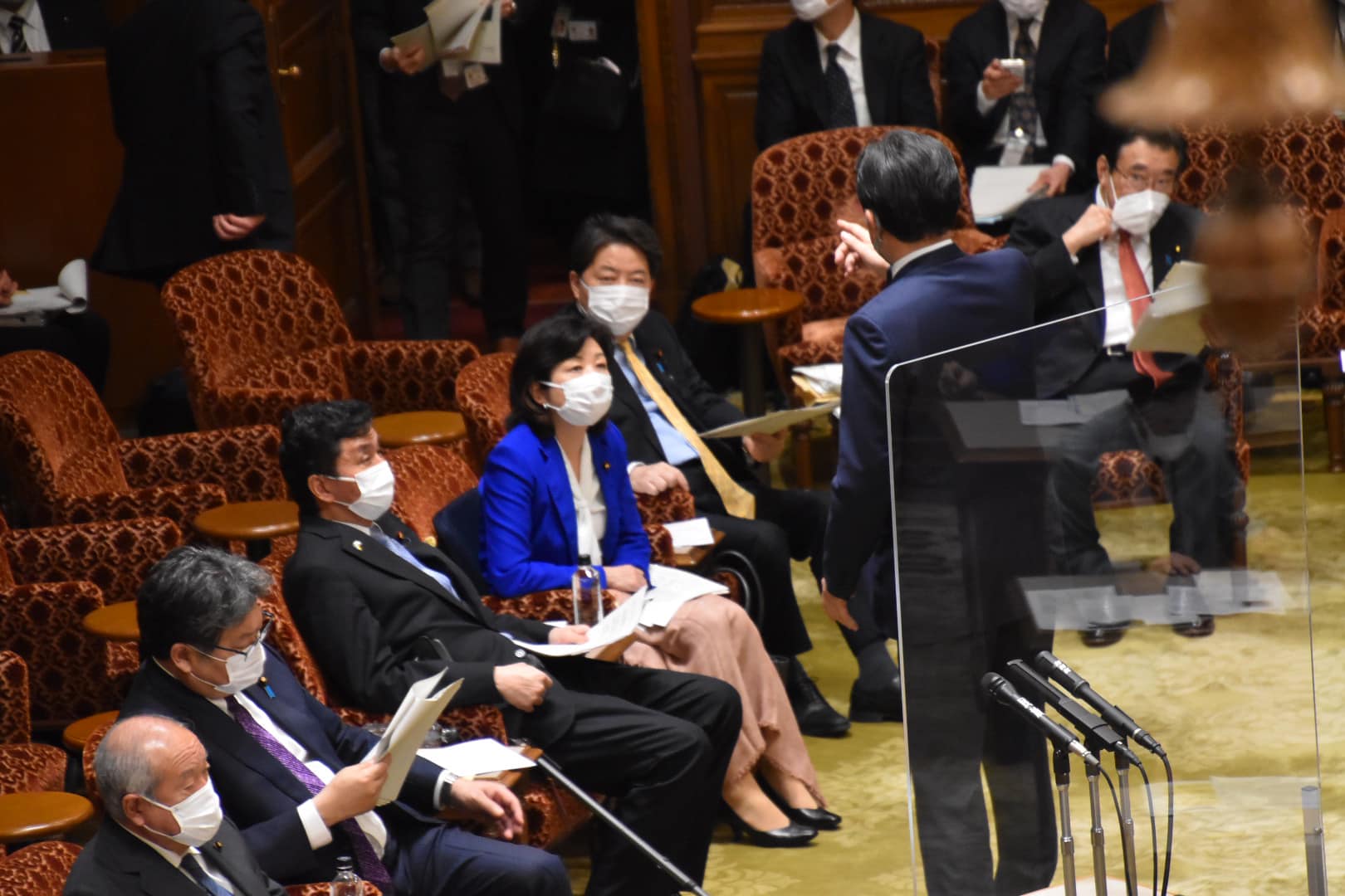 本日は在日米軍経費、雇用保険法改正に対する本会議があり、それぞれ林外務大臣、後藤厚労大臣から提案理由説明があり代表質問が行われました。
