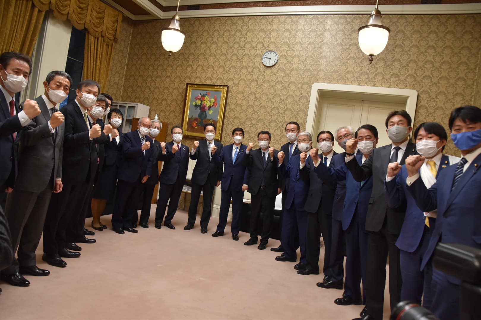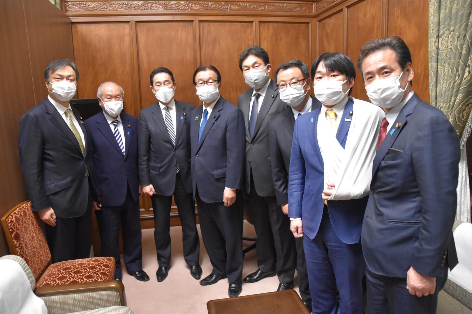 その後、関口会長室にて自民党役員に成立のお礼ご挨拶に岸田総理、鈴木財務大臣、松野官房長官始め政府の皆さんが来られました。