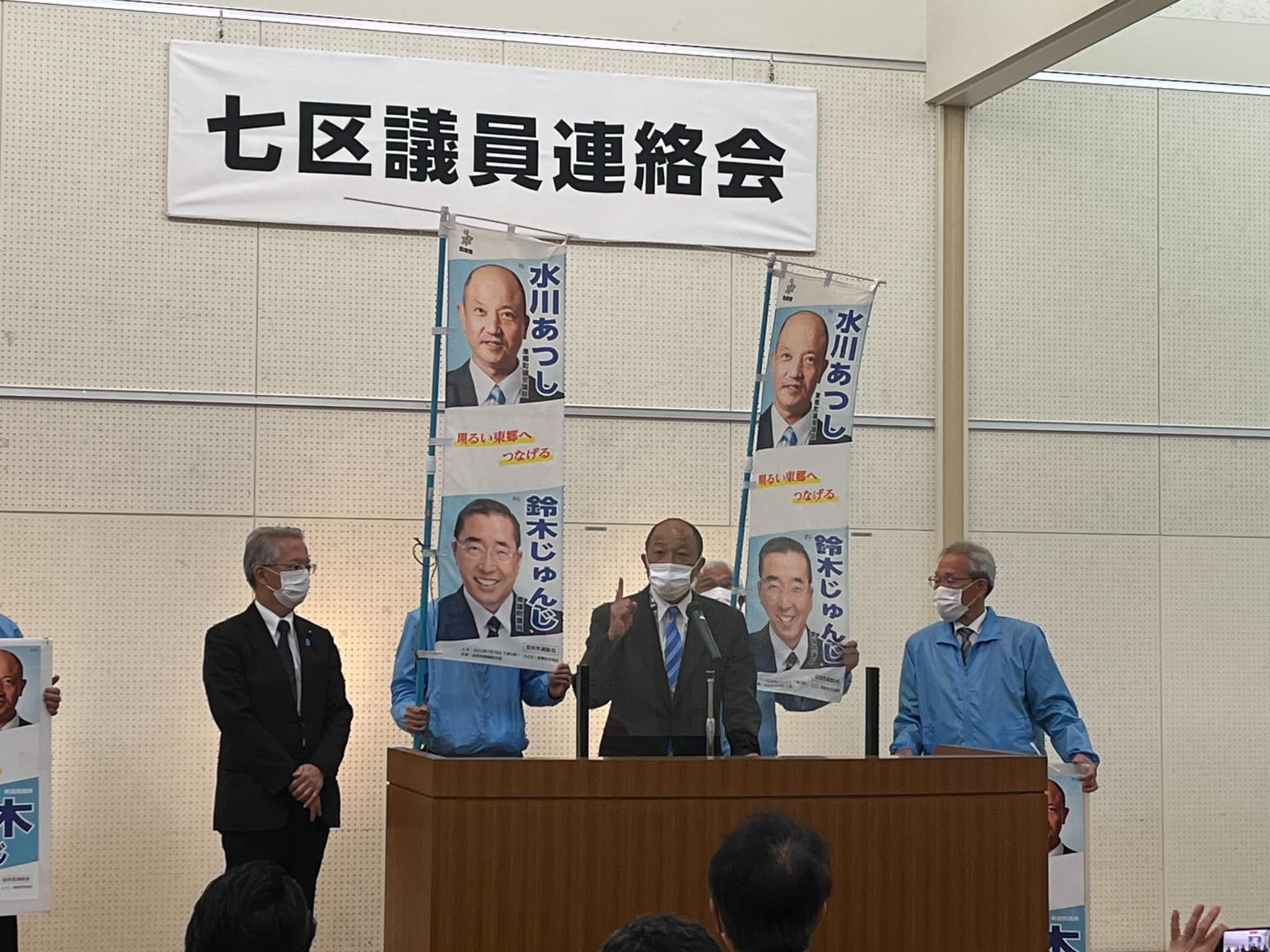 今月19日には地元東郷町長選挙の候補予定者である水川あつしさんのご挨拶もあり共に皆さんと共に必勝の勝鬨をあげていただきました。