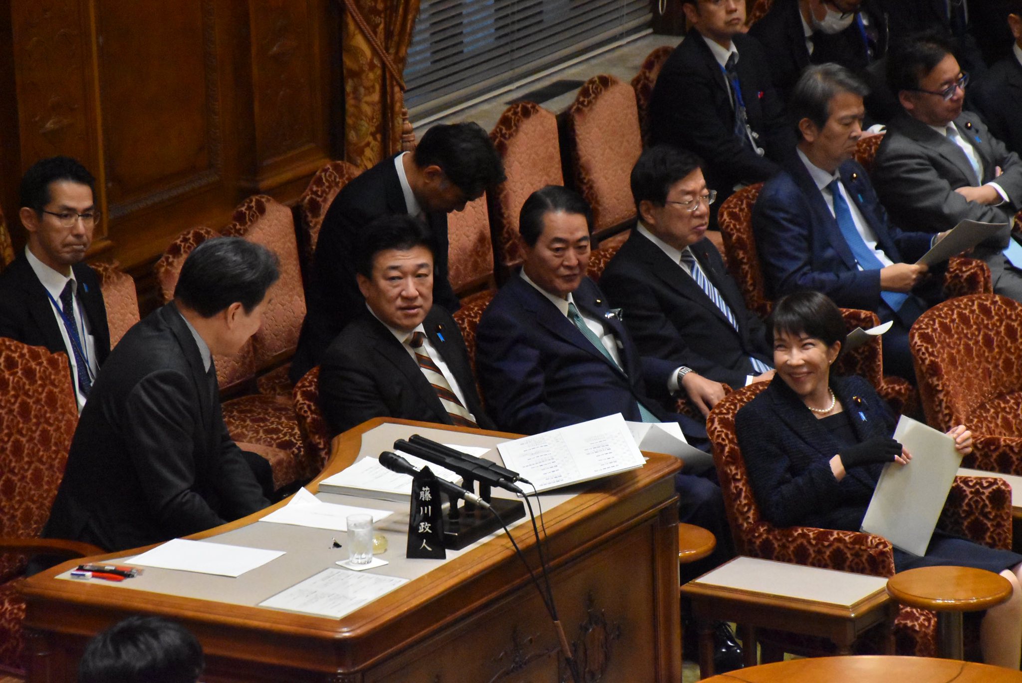 参議院予算委員会は午後5時半からでしたが、衆議院から片山大臣が到着を待つ間、しばし総理、官房長官、牧野復興大臣と歓談しました。