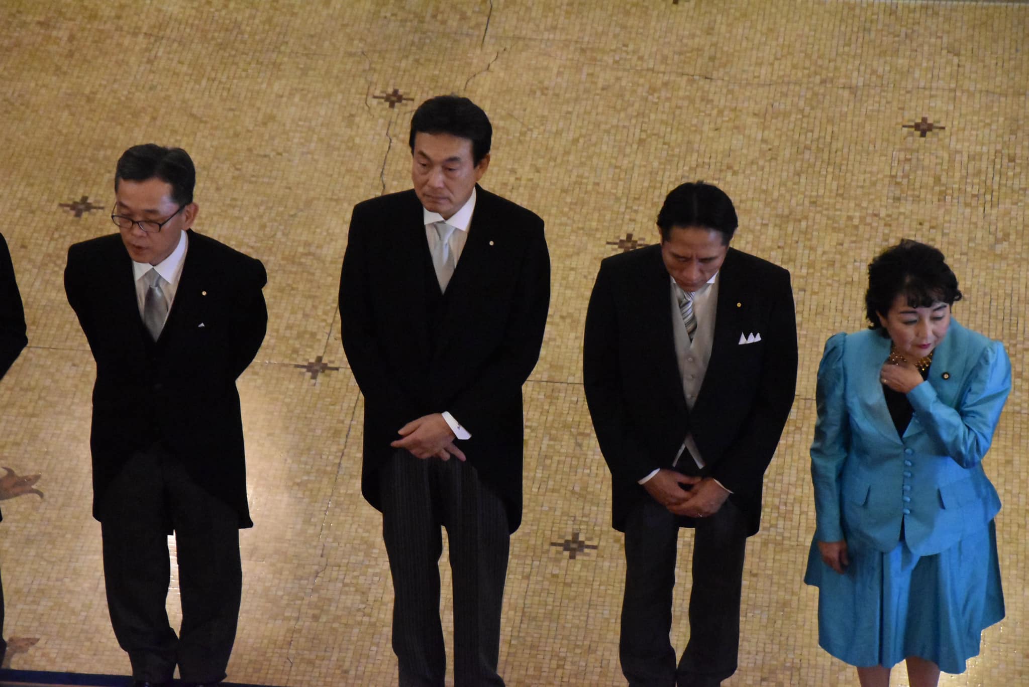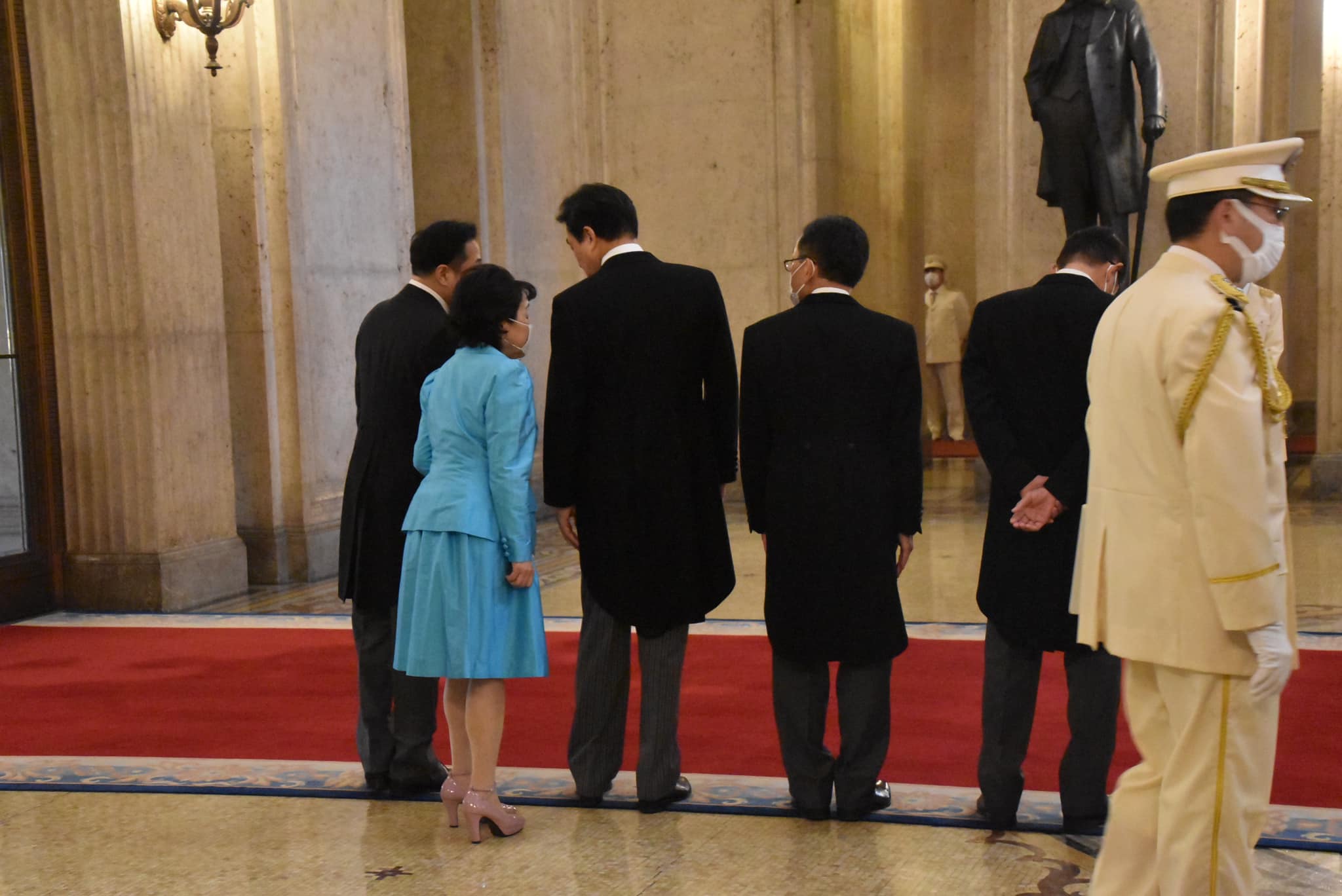 衆参委員長の役目として開会式に臨まれる天皇陛下を中央廊下でお出迎え、お見送りをいたします。