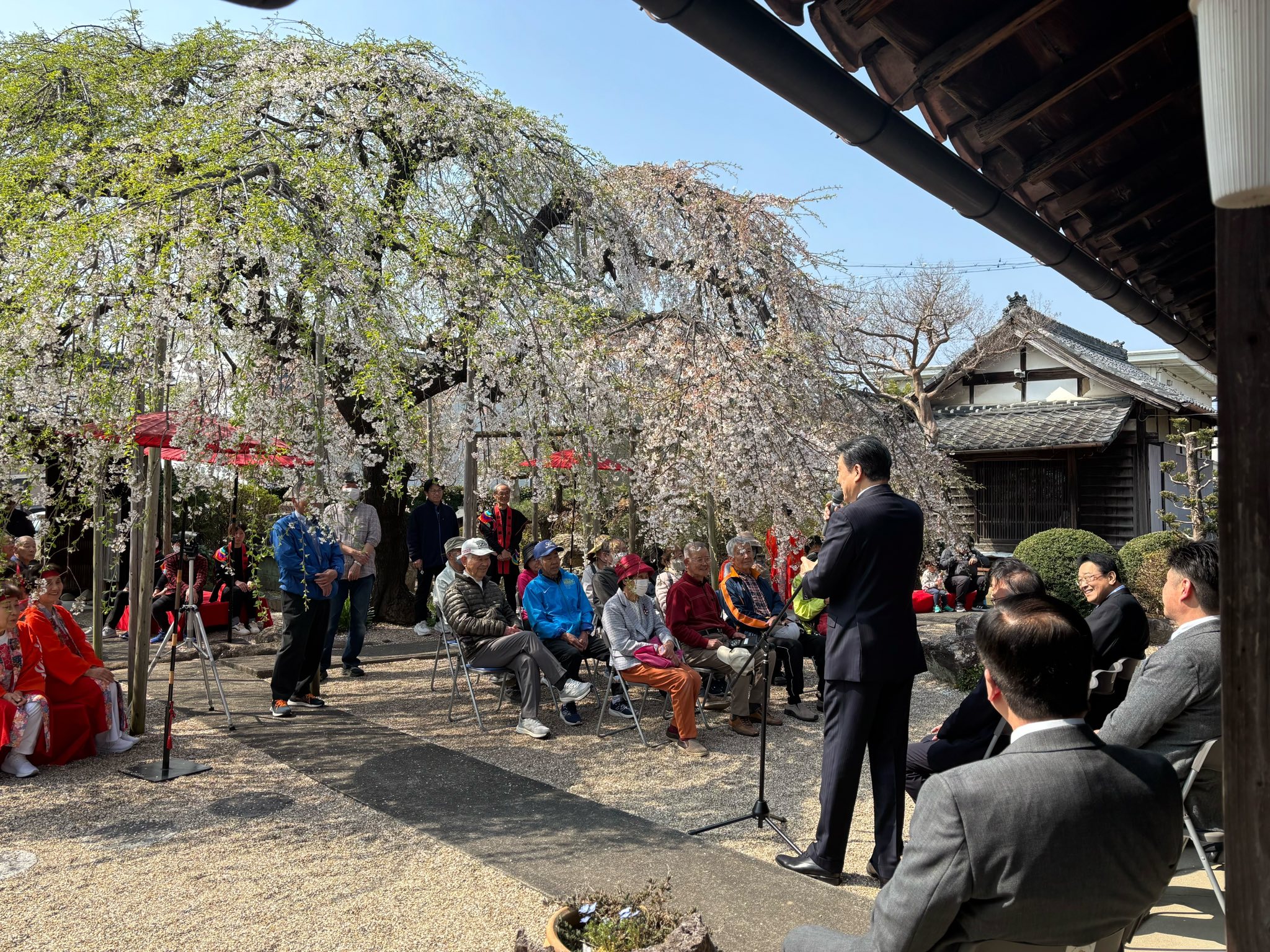 1600年代に建てられた臨済宗悟渓和尚ゆかりの扶桑町指定文化財にて、樹齢100年の枝垂れ桜は今年は若葉も見られる姿でしたが、往時を偲びお茶もいただきしばし皆でゆったりと時間を楽しみました。