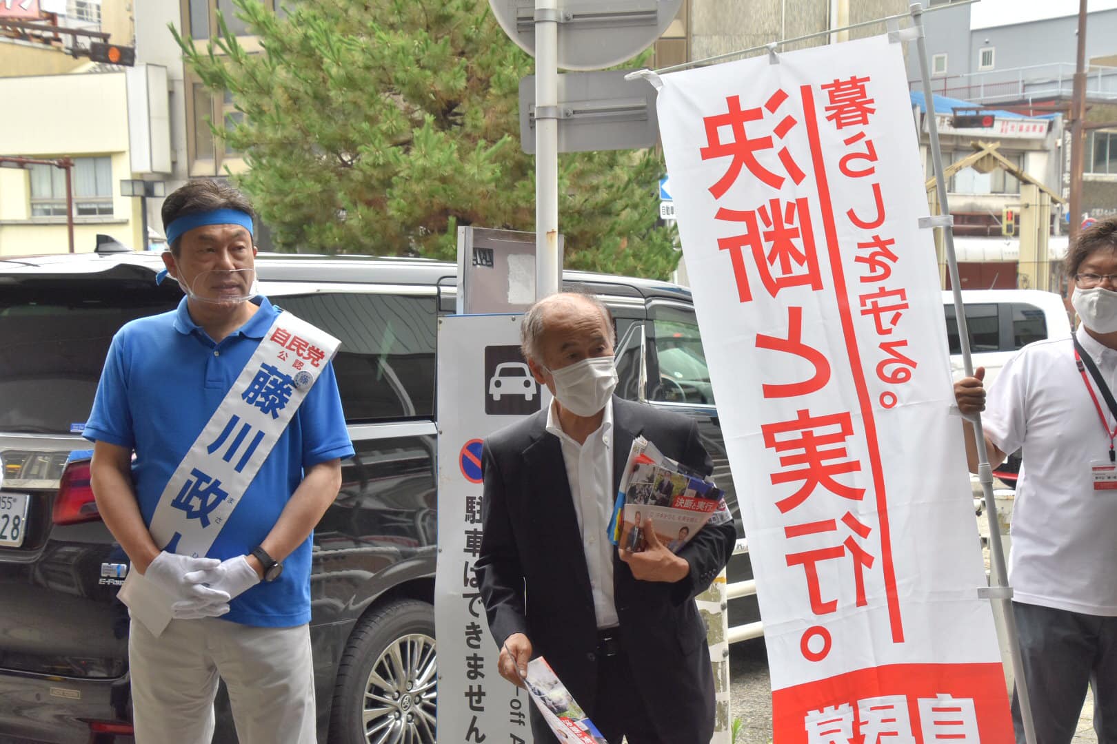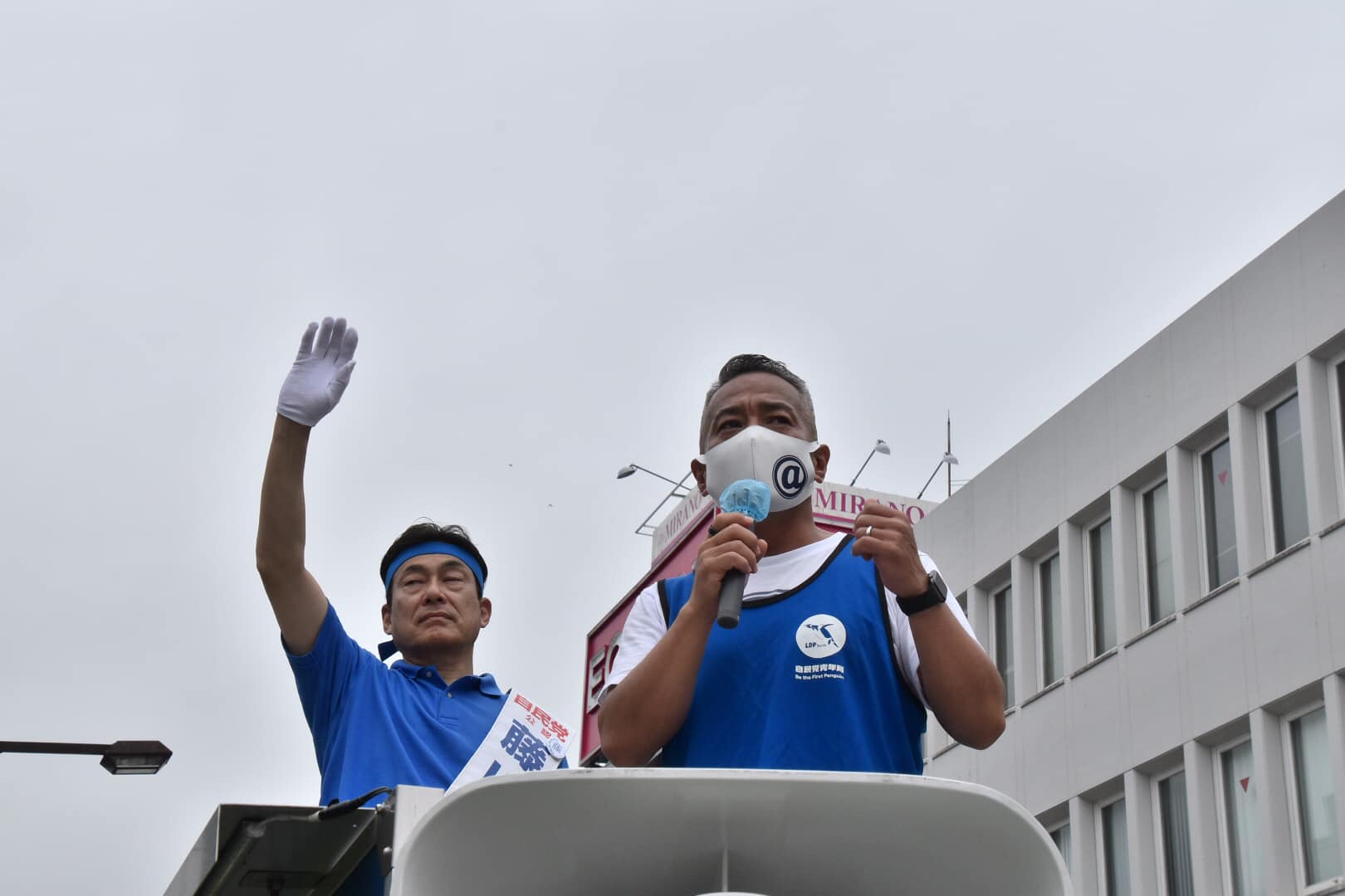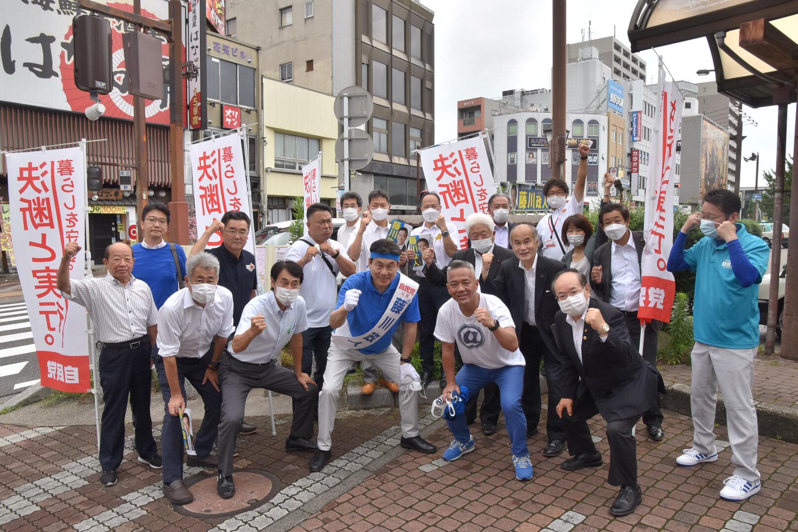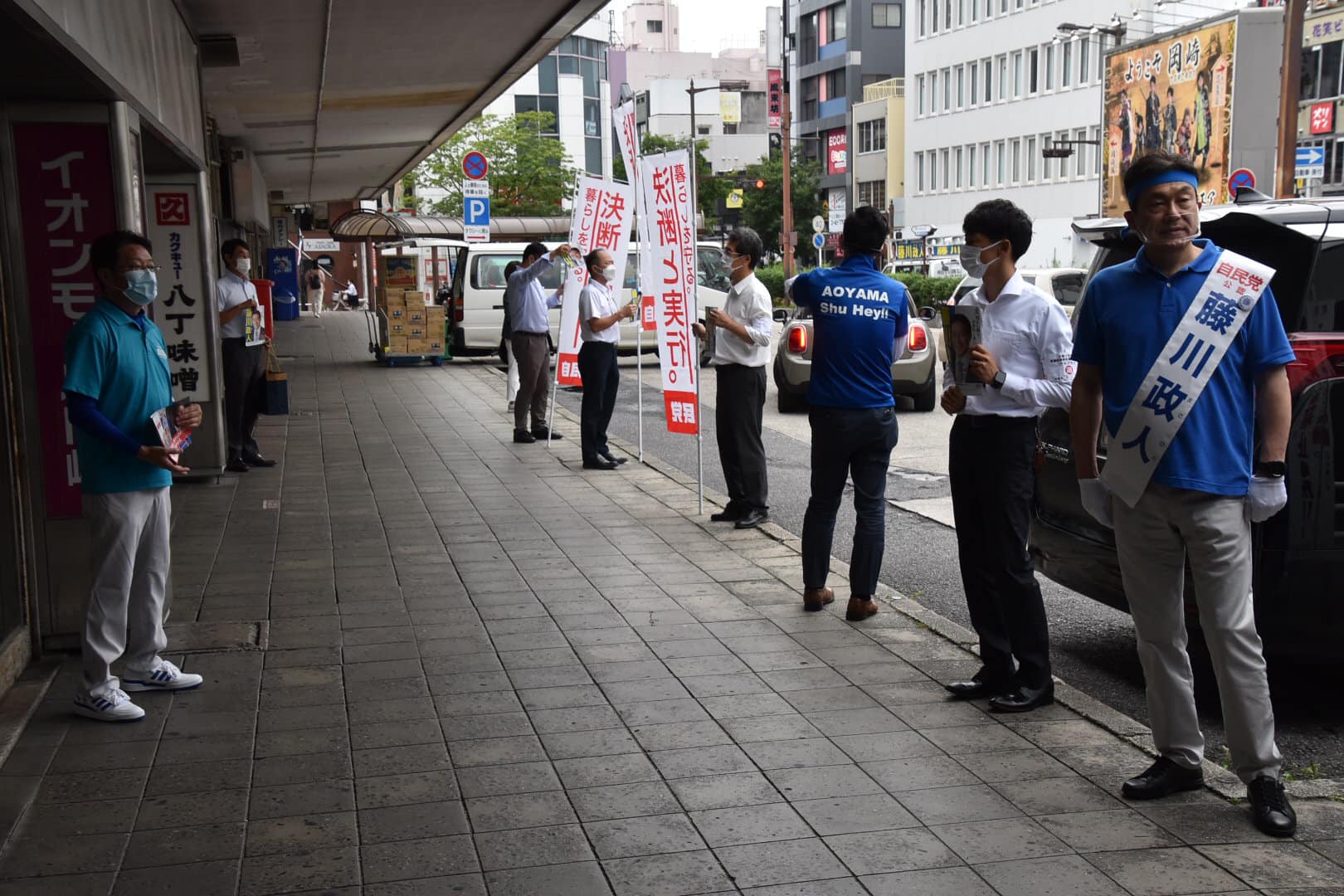 名鉄東岡崎駅前にて早朝活動、続いて街頭演説会を行い、お地元の青山周平衆議院議員、中根義高県議会議員、新海正春県議会議員、岡崎市議会議員の方々とお訴えさせていただきました。