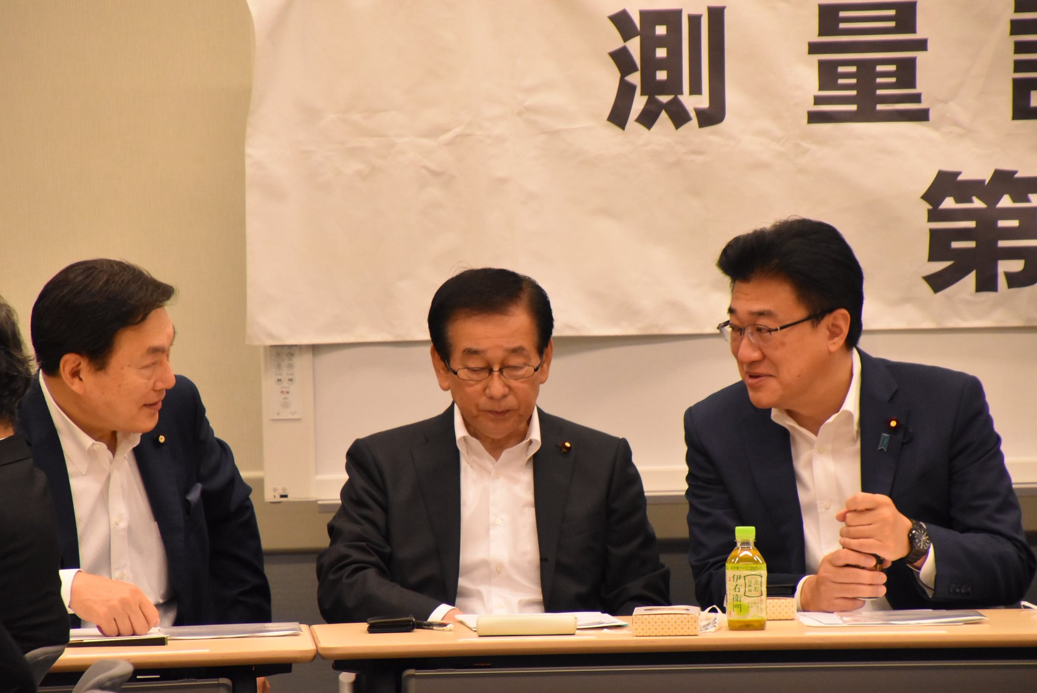 田中和徳議連会長、野瀬操全国測量設計政治連盟会長、藤本祐二全測連会長からご挨拶いただき、木原稔、渡辺猛之PT座長よりそれぞれの取り組み内容について発表いただきました。