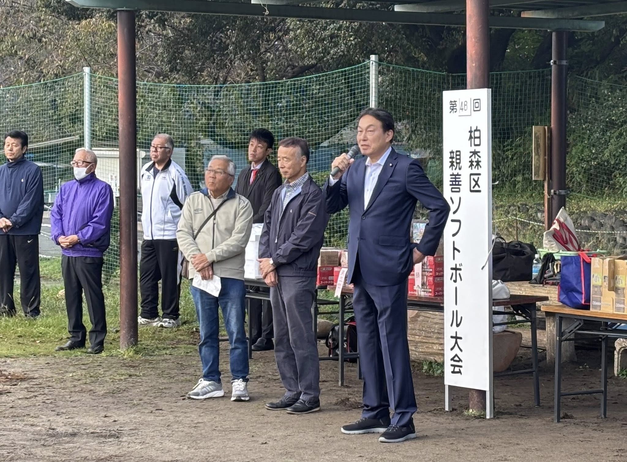 地元柏森区のソフトボール大会では始球式をいたしました。