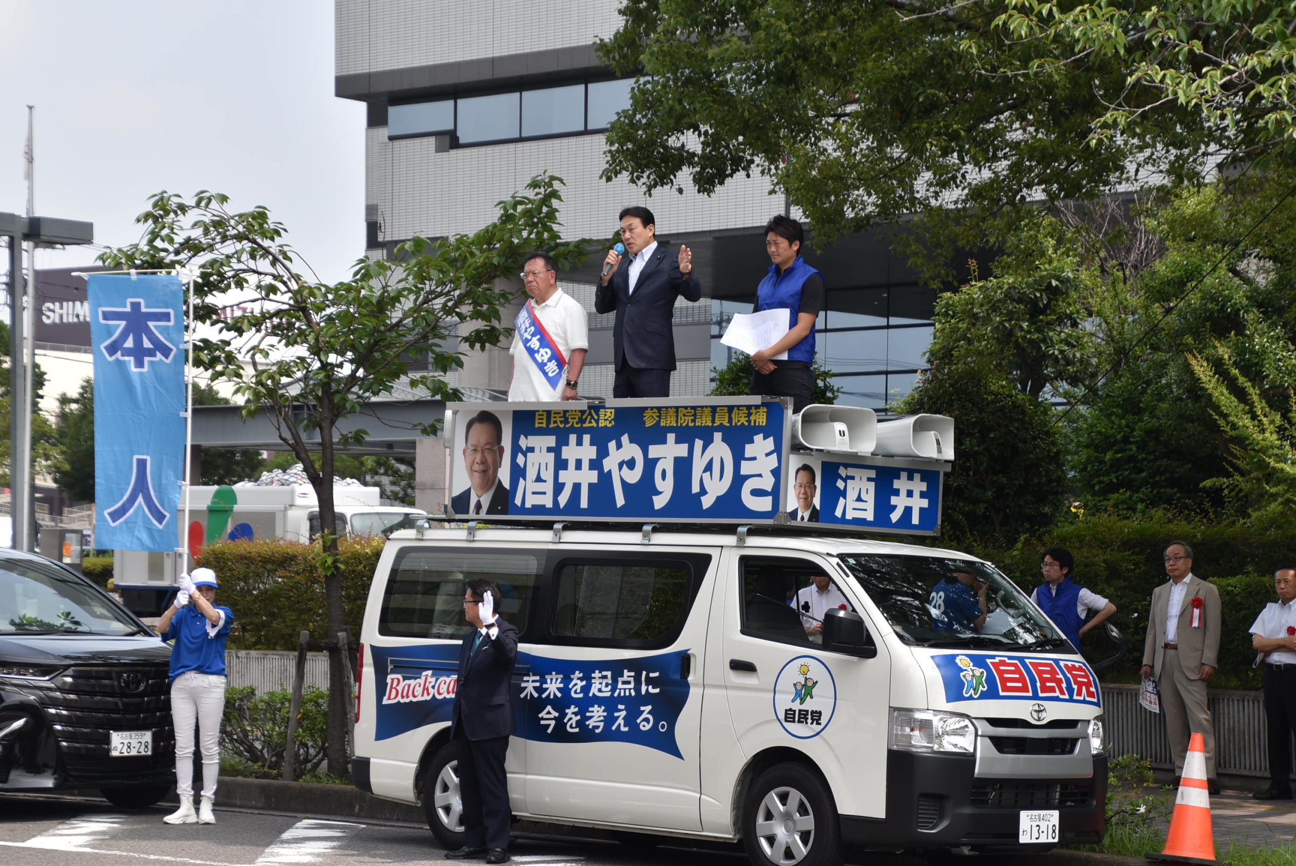 酒井やすゆき候補、二日目は春日井市での出発式です。この後、夜は名古屋市昭和区、天白区、緑区での演説会に向かいます。