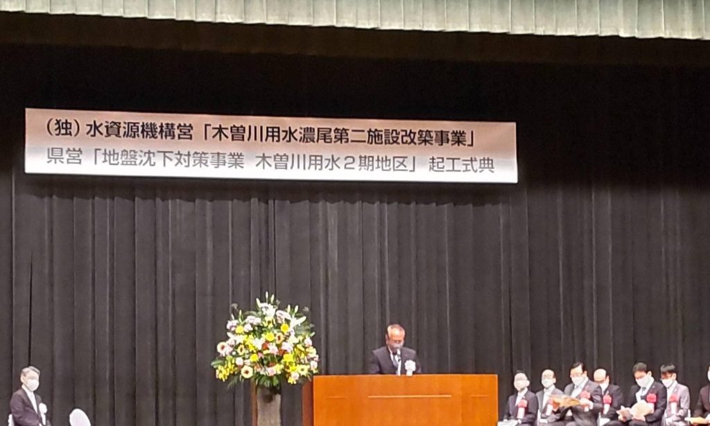 引き続き津島市に移動し、水資源機構、県事業として起工される木曽川用水の式典に出席しました。