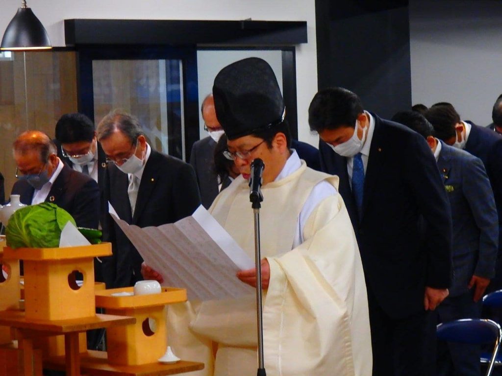 神事に続き渡辺正臣後援会長始め衆議院議員の皆さんにご挨拶いただき、私もご参加の皆様に心からのお礼と決意のご挨拶を申し上げました。