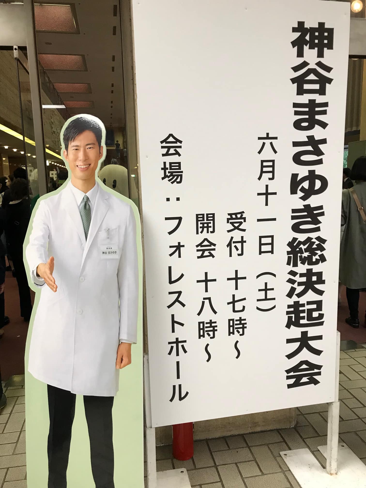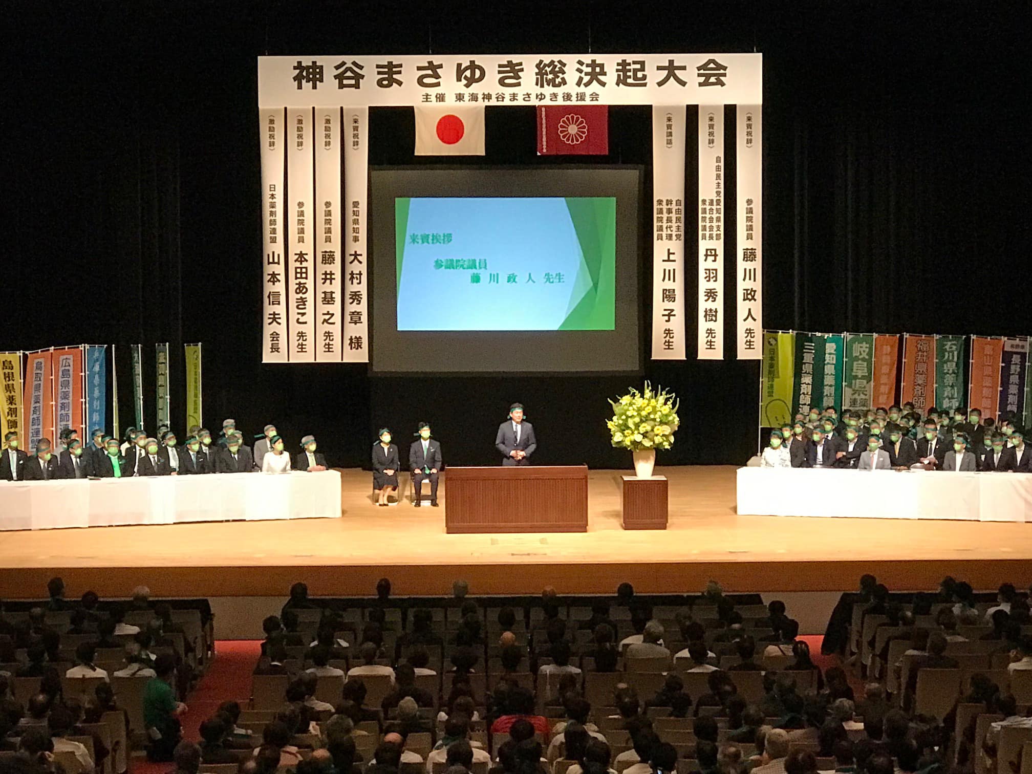 その後薬剤師でありこの夏の参議院選挙にて薬剤師政治連盟を代表して出馬予定の神谷まさひろさんの総決起大会に出席し応援のご挨拶をいたしました。