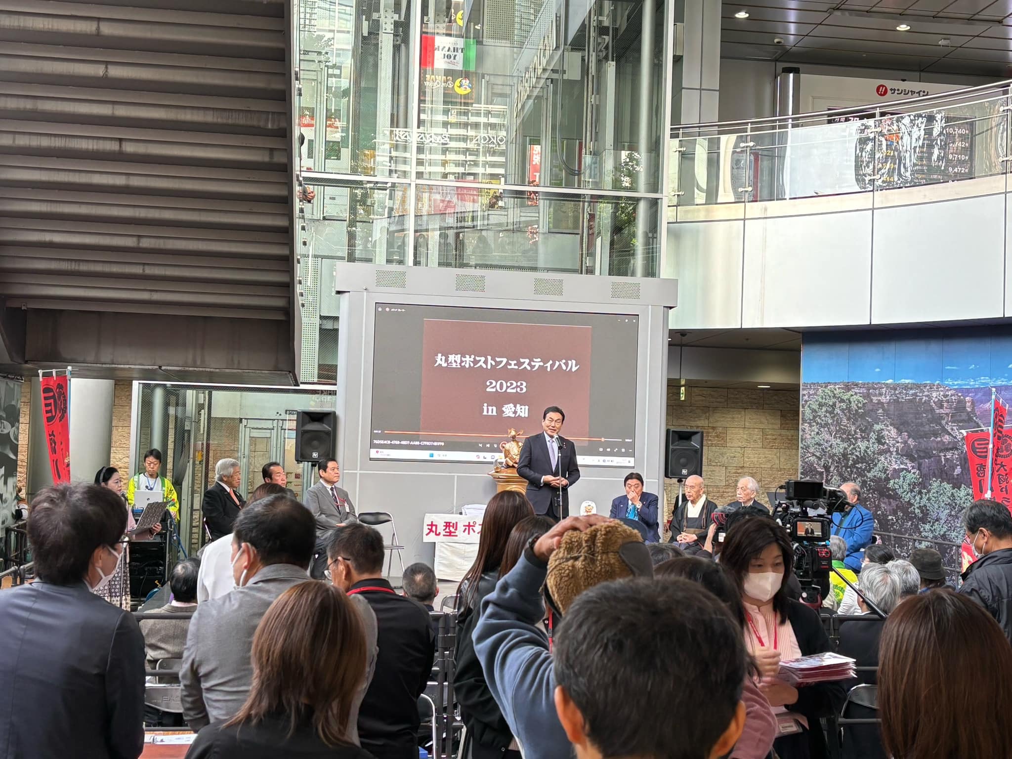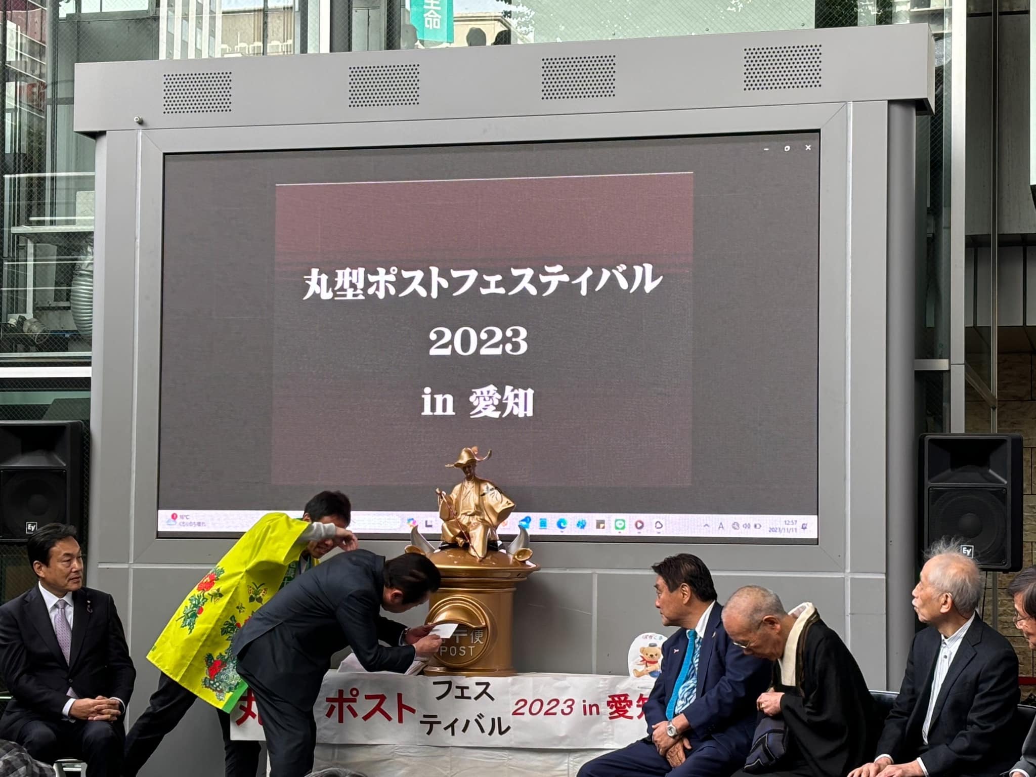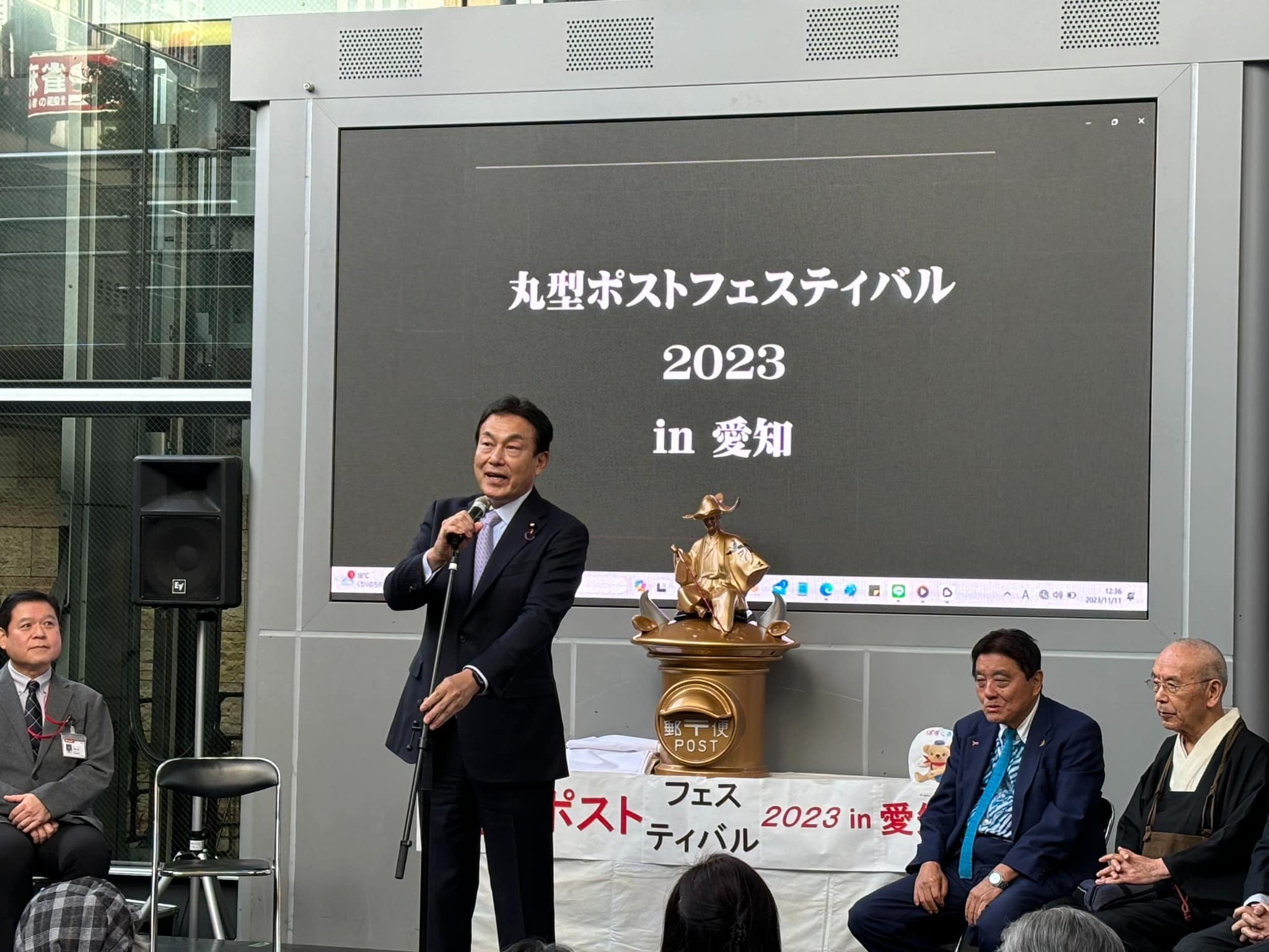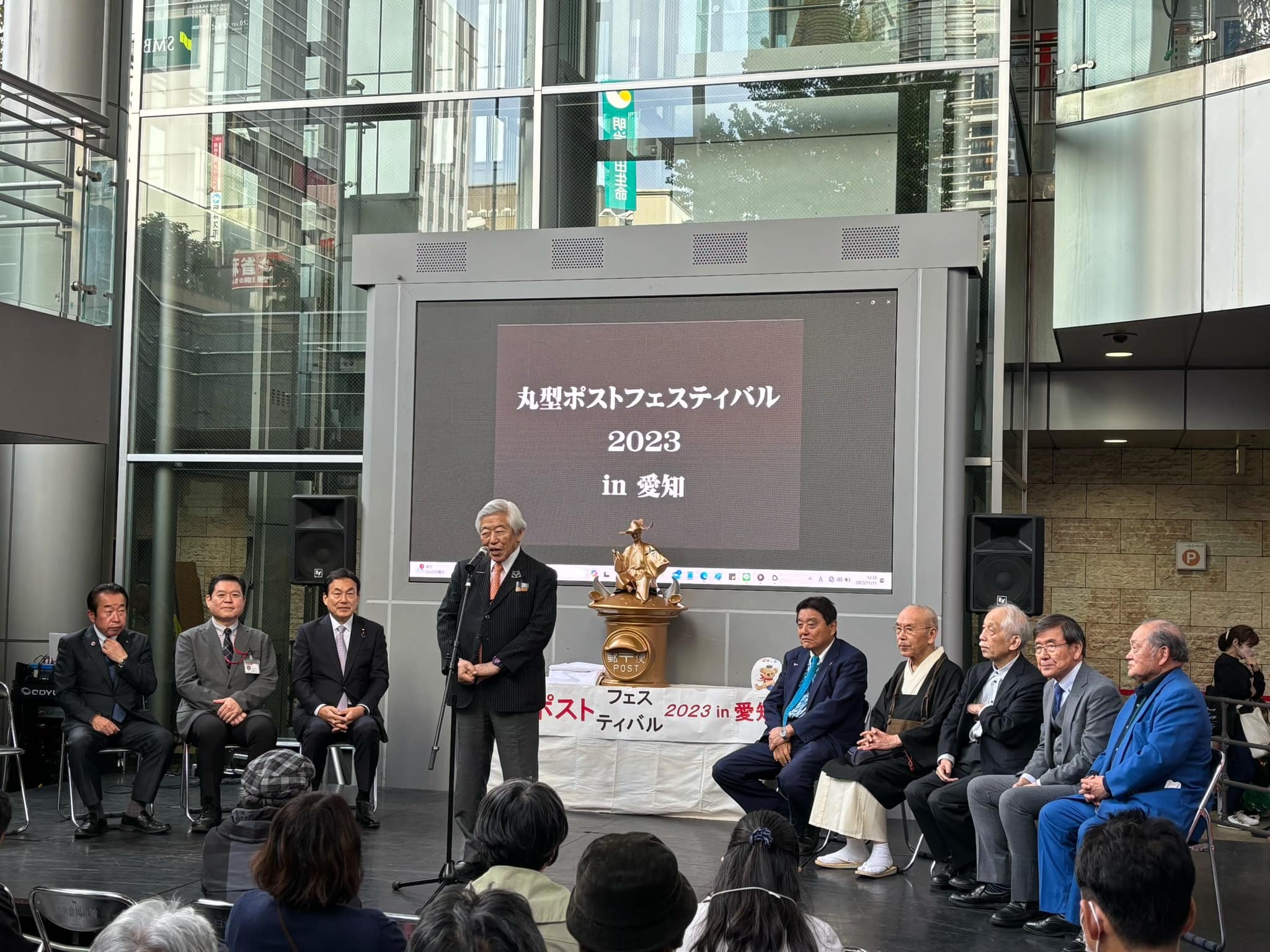 日本近世文学、近世芸能研究者安田文吉先生、画家の斎藤吾朗先生方と昼食後、丸型ポストフェスティバル2023IN愛知式典に出席しました。