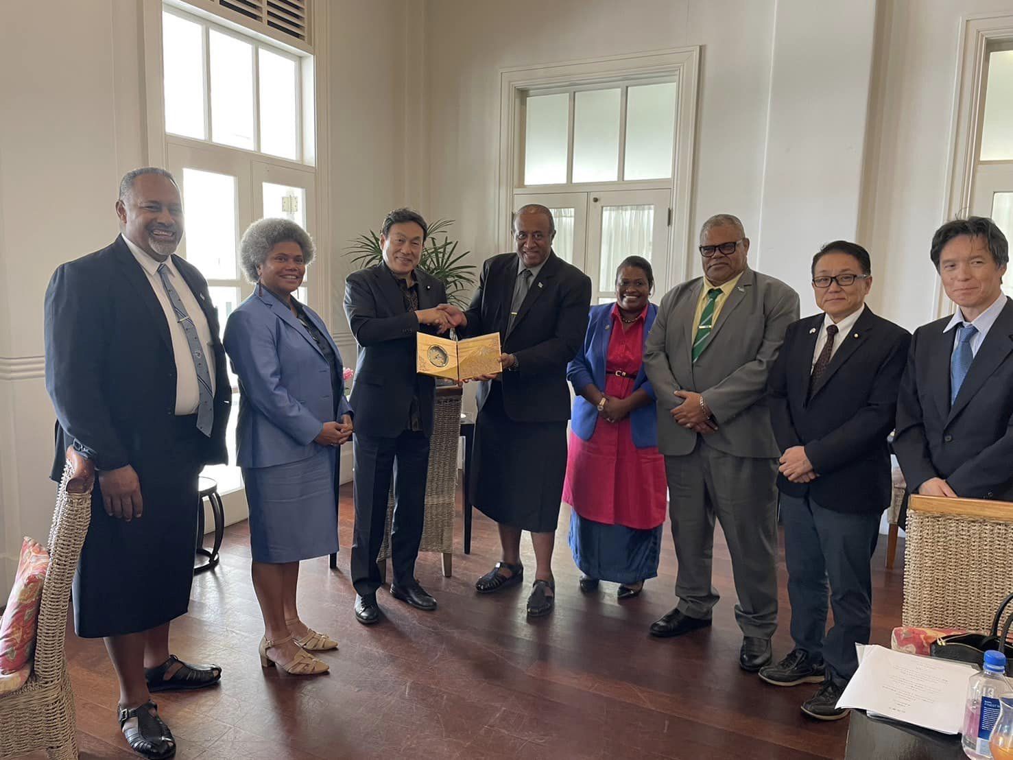 過去2回いずれも団長として東ティモール、パプアニューギニア、ソロモン諸島と訪問しましたが、いずれも中国の進出が顕著であり、支援実績国である我が国の一層の支援が必要です。セスナ機に近い飛行機での移動もありフィジーの道井大使、トンガの稲垣大使初めて各国駐在の皆さんにもお世話になりました。ジェトロ、青年海外協力隊の皆さんやWHO、ユニセフなど現地で活躍される国際公務員の皆さん達とも貴重な意見交換ができました。